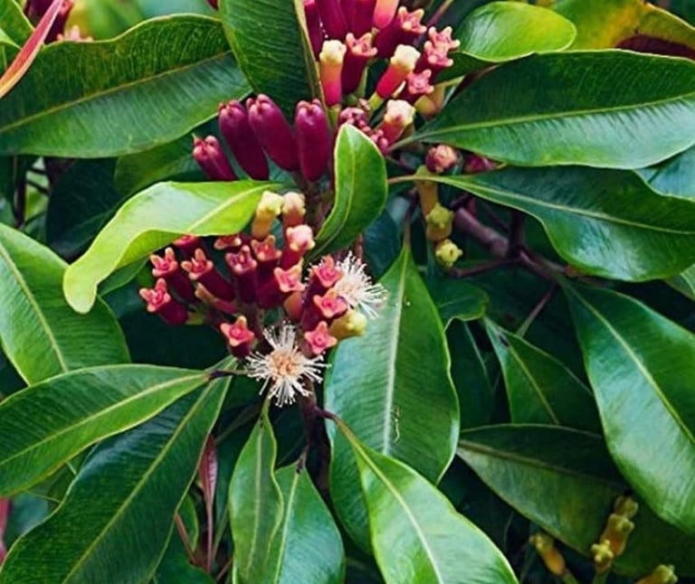The clove tree (Syzygium aromaticum) is an evergreen tropical tree belonging to the family Myrtaceae, native to the Maluku Islands (Spice Islands), Indonesia. Its dried flower buds are widely known as the spice “clove,” while its essential oil—known as clove oil—has numerous applications in culinary, perfumery, health, and industry.